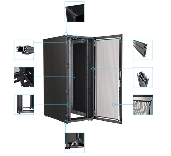 • Made from aluminum, the rack is extremely light, minimizing raised floor loading and making it easy to transport and set up.