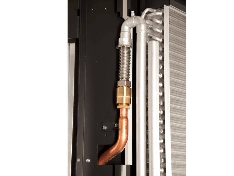 Knürr DCD is an air-water heat exchanger that is integrated into the rear door of a server cabinet. The heat exchanger serves to absorb heat loads from server racks of up to 50 kW. Knürr DCD is configurable with Knürr DCM cabinets or can be mounted to other vendor cabinets. The design of the heat exchanger permits an increase in the chilled water temperature.​​​​​